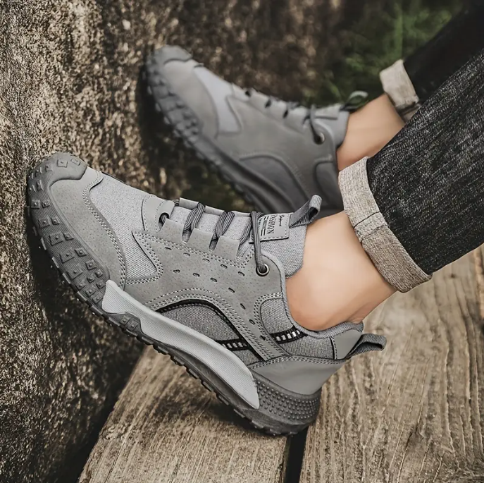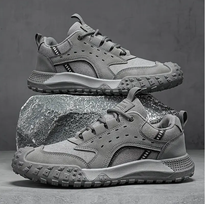 Hiking Outdoor Shoes, Durable Slip-Resistant PVC Sole, Lace-Up Low Top Sneakers with Fabric Upper & Lining, EVA Insole, Round Toe - Solid Color All-Season Footwear for Hiking and Outdoor Activities