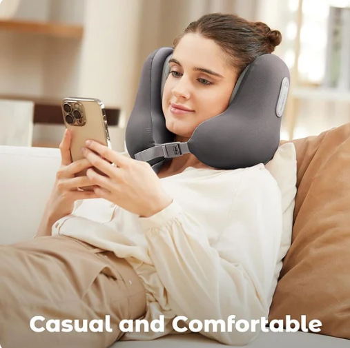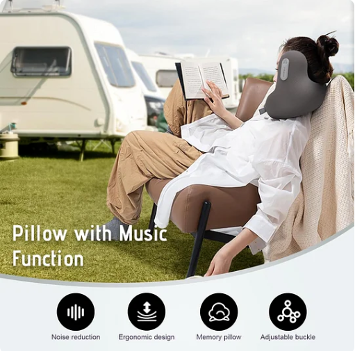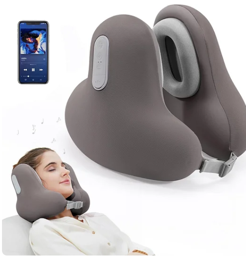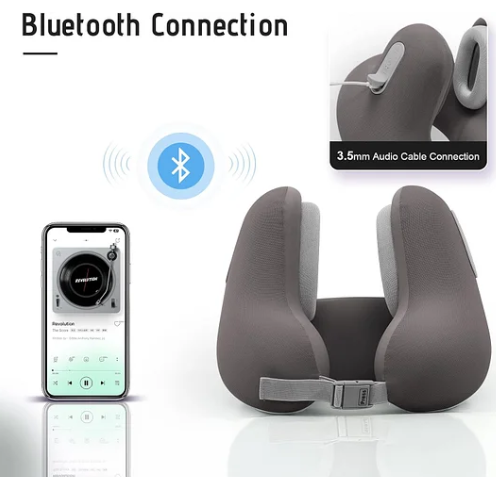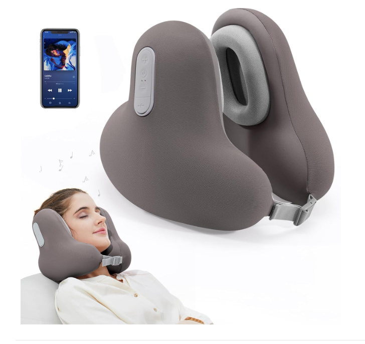 [24-hour delivery+Cash on delivery] Travel Neck Pillow with Bluetooth Headset, Memory Foam Airplane Pillow for Head Support, Ergonomic Design Traveling Music Pillow for Home, Flight, Car with Adjustable Buckle and Drawstring Bag(Grey)